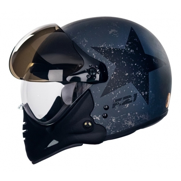 Capacete Moto Custom Peels F21 F-21 Us Army Tank Militar Aviador C/ 2 Viseiras Queixeira Removível - Chumbo Fosco