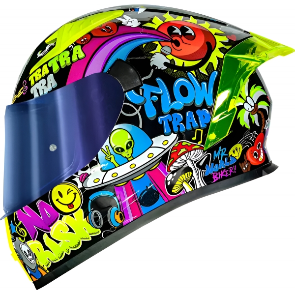 Capacete Moto Norisk Flow Trap Desenho Preto Amarelo Feminino Masculino C/ Spoiler + Viseira Extra