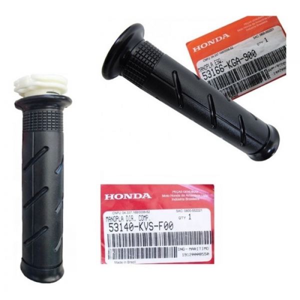 Produto original honda e fabricado em matéria prima de primeira linha, visando alta eficiência e durabilidade das peças.- Manoplas fabricadas em borracha de alta durabilidade;- Produto original da montadora, novo e com nota fiscal- Valor referente ao PAR;- Codigo Original Lado Direito: 53140KVSF00 ( Com Tubo Roldana do acelerador )- Codigo Original Lado Esquerdo: 53166KGA900- Aplicação: TITAN 150 2014 2015 - TITAN 160 - FAN 160 - START 160- Cor: Preto